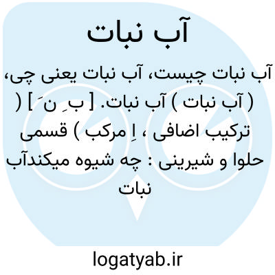( آب نبات ) (نَ ) (اِمر. ) نوعی شیرینی که با شیرة شکر سازند.، ~ چوبی آب نبات مخصوص کودکان که معمولاً دستة چوبی یا پلاستیکی دارد.، ~ قیچی آب نباتی که پیش از سرد شدن آن را به صورت مفتول باریکی درمی آورند و با قیچی به قطعات کوچک تقسیم می کنند.، ~ کشی آب نباتی که