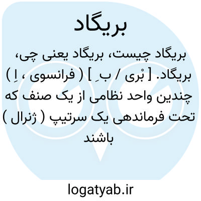 بریگاد. [ بْری / ب ِ ] ( فرانسوی، اِ ) چندین واحد نظامی از یک صنف که تحت فرماندهی یک سرتیپ ( ژنرال ) باشند. || واحدی مرکب از دو فوج. تیپ. ( فرهنگ فارسی معین ).