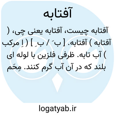 ( آفتابه ) ( اسم ) ظرفی فلزین با لول. بلند که در آن آب کنند و بدان دست و رو و دهان را شویند.