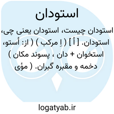 استودان. [ اُ ] ( اِ مرکب ) ( از: اُستو، استخوان + دان، پسوند مکان ) دخمه و مقبره گبران. ( مؤید الفضلاء ) ( برهان ).ستودان. ( انجمن آرا ). ناووس. رجوع به ستودان شود.