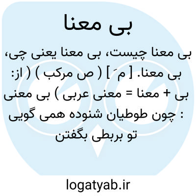 بی معنا. [ م َ ] ( ص مرکب ) ( از: بی + معنا = معنی عربی ) بی معنی: