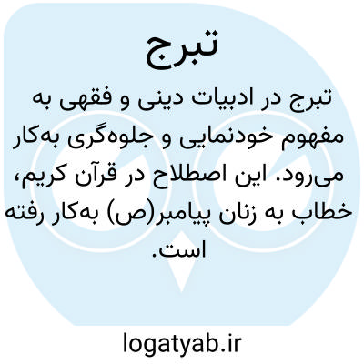 [ویکی فقه] تبرج (قرآن). تبرج، از ماده برج، به معنای آشکار کردن زن، زیباییهای خود را برای مردان است.