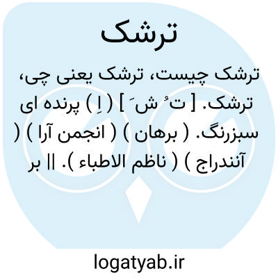 ترشک. [ ت ُ ش َ ] ( اِ ) پرنده ای سبزرنگ. ( برهان ) ( انجمن آرا ) ( آنندراج ) ( ناظم الاطباء ). || برگ گیاهی است ترش مزه. ( برهان ) ( آنندراج ) ( انجمن آرا ). و آنرا ترش گیاه نیز گویند. ( انجمن آرا ) ( آنندراج ). گیاهی که بتازی حماض گویند. ( ناظم الاطباء ). قسمی سبزی صحرایی بهاره خوردنی با طعمی نزدیک به ترش که در آشها کنند. ( یادداشت بخط مرحوم دهخدا ). ترشه ( از ترش )، طبری تِرْشَه. ( حاشیه برهان قاطع چ معین ). ترشک، رومکس، از انواع تیره ترشکها که بحالت خودرو در نقاط مرطوب بسیار دیده میشود وبرگهای آن دارای اکسالات دو کلسیم زیاد است. انواع دیگر تیره ترشکها عبارتند از گندم سیاه و ریوند. و رجوع به گیاه شناسی گل گلاب ص 272 و 273 شود: