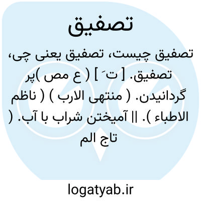 تصفیق. [ ت َ ] ( ع مص )پر گردانیدن. ( منتهی الارب ) ( ناظم الاطباء ). || آمیختن شراب با آب. ( تاج المصادر بیهقی ) ( از زوزنی ). || شراب از انایی به انایی بردن. ( تاج المصادر بیهقی ) ( از غیاث اللغات ) ( از آنندراج ). شراب را یا شراب ممزوج را از خنوری به خنور دیگر کردن تا صاف گردد. ( منتهی الارب ) ( ناظم الاطباء ) ( ازاقرب الموارد ). || دست بر هم زدن. ( تاج المصادر بیهقی ) ( زوزنی ) ( آنندراج ). دست بر دست زدن. ( منتهی الارب ) ( ناظم الاطباء ). زدن دو دست بر یکدیگر چنانکه آواز برآید. ( از اقرب الموارد ). || به کف دست بر دست دیگر زدن. ( از اقرب الموارد ). || اشتر از چراگاهی به چراگاهی بردن. ( تاج المصادر بیهقی ). ستور را از چراگاه به چراگاه دیگر گردانیدن. ( منتهی الارب ) ( آنندراج ) ( ناظم الاطباء ). اشتر را از جای چریده به جای ناچریده بردن. ( از اقرب الموارد ). رفتن. || گرد چیزی گردیدن. ( منتهی الارب ) ( ناظم الاطباء ) ( از اقرب الموارد ). || جنبانیدن باد درخت را. ( آنندراج ). || بهم زدن مرغ بالهای خود را چنانکه صدا دهد. ( از اقرب الموارد ).