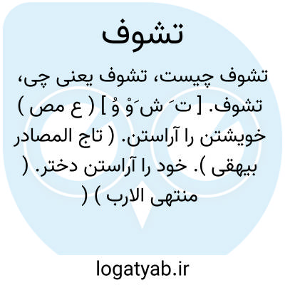 تشوف. [ ت َ ش َوْ وُ ] ( ع مص ) خویشتن را آراستن. ( تاج المصادر بیهقی ). خود را آراستن دختر. ( منتهی الارب ) ( آنندراج ) ( ناظم الاطباء ). تزین. ( اقرب الموارد ). || برآمدن بر چیزی تا بنگرد. ( منتهی الارب ) ( آنندراج ) ( ناظم الاطباء ). || چشم داشتن. ( تاج المصادر بیهقی ). انتظار خبری کردن. ( منتهی الارب ) ( آنندراج ) ( ناظم الاطباء ) ( از اقرب الموارد ). || سر بیفراشتن از برای نگریستن. ( زوزنی ). سر دروا نگریستن چیزی را. ( منتهی الارب ) ( آنندراج ) ( ناظم الاطباء ). یقال: النساء یتشوفن من السطوح؛ ای ینظرن. ( منتهی الارب ) ( ناظم الاطباء ) ( اقرب الموارد ).