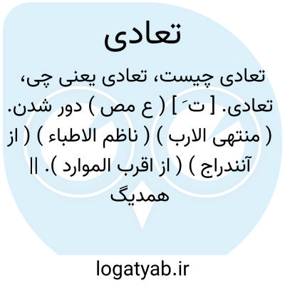 تعادی. [ ت َ ] ( ع مص ) دور شدن. ( منتهی الارب ) ( ناظم الاطباء ) ( از آنندراج ) ( از اقرب الموارد ). || همدیگر دشمنی کردن. || اختلاف گردیدن میان کسان. || مردن یکی بعد دیگری. ( منتهی الارب ) ( ناظم الاطباء ) ( از اقرب الموارد ). || پیاپی شدن نوائب. ( از اقرب الموارد ). || برابر ناشدن جای. || با هم دویدن و نبرد کردن در دویدن. ( منتهی الارب ) ( ناظم الاطباء ) ( از اقرب الموارد ). || ( اِ )جایهای ناهموار. ( منتهی الارب ) ( ناظم الاطباء ) ( از اقرب الموارد ). || تباهی. || دوری. || فساد. ( منتهی الارب ) ( ناظم الاطباء ).