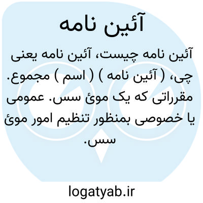 ( آئین نامه ) ( اسم ) مجموع. مقرراتی که یک موئ سس. عمومی یا خصوصی بمنظور تنظیم امور موئ سس. خود تهیه و تدوین میکنند مانند آیین نامه های موئ سسات دولتی انجمنهای محلی احزاب شرکتها آموزشگاهها و غیره نظامنامه.
