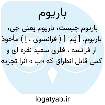 باریوم. [ یُم ْ ] ( فرانسوی، اِ ) مأخوذ از فرانسه، فلزی سفید نقره ای و کمی قابل انطراق که «ب » آنرا تجزیه کرده و هیدرژن آن متصاعد گشته و با اکسیژن وی مرکب شده تولید بریت مینماید. و داودنام کیمیاگر انگلیسی این جسم را کشف نمود. ( ناظم الاطباء ). عنصر شیمیایی از گروه قلیائیات خاکی است بصورت آزاد بشکل سفیدنقره رنگ و فلز چکش خور وجود دارد و بزودی در هوا اکسیده میشود. علامت شیمیایی آن «Ba» است. باریوم فقط بصورت ترکیب یافته میشود و بخصوص بصورت سولفات ( باریت بارتیس ) و کربنات یافته شود و هر یک ازین دو دارای ثقل خاصی هستند. این فلز با حرارت دادن، اکسید آن با آلومینیوم یا سیلیسیم در خلأ آماده و در 850 درجه حرارت ذوب میشود و شعله های زرد مایل بسبز دارد. رجوع به باریت و بریت، شود.