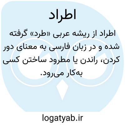 از ریشهٔ عربی «طرد» گرفته شده و در زبان فارسی به معنای دور کردن، راندن یا مطرود ساختن کسی بهکار میرود. در متون لغوی آمده است که معمولاً در معنایی رسمی یا فرمانی بهکار میرود، یعنی وقتی کسی یا چیزی به دستور مقام بالاتر از مکانی یا موقعیتی بیرون رانده میشود. بهعنوان نمونه در «جهانگشای جوینی» آمده است: «سلطانی بزرگ است که به ظاهر شهر نزول کرده است و اتابک را قوت ازعاج و اطراد او نه»، که بیانگر کاربرد سیاسی و حکومتی این واژه است؛ یعنی فرمان به برکناری یا اخراج کسی از جانب حاکم.