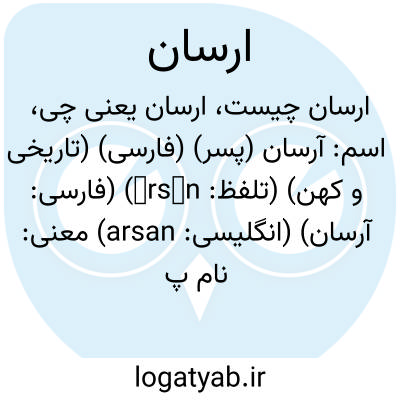 اسم: آرسان (پسر) (فارسی) (تاریخی و کهن) (تلفظ: ārsān) (فارسی: آرسان) (انگلیسی: arsan)