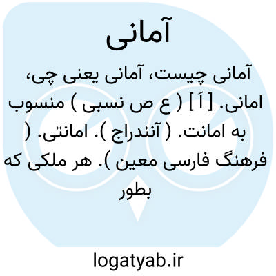 امانی. [ اَ ] ( ع ص نسبی ) منسوب به امانت. ( آنندراج ). امانتی. ( فرهنگ فارسی معین ). هر ملکی که بطور امانت بکسی واگذار شده باشد بدون اجازه. ( ناظم الاطباء ). املاک خالصه سرخس را اجازه نداده اند و امانی عمل میکنند. ( یادداشت مؤلف ). || گرو و رهن. ( ناظم الاطباء ).