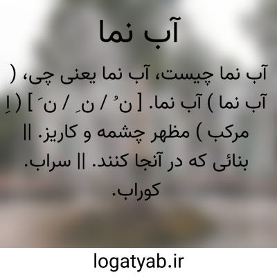 ( آب نما ) ( اسم ) ۱ - حوض یا جوی که آب آن در خانه یا باغ ظاهر باشد. ۲ - موضعی که آب چشمه یا کاریز بروی زمین آید.