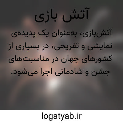 آتش بازی. آتش بازی کاری تفریحی و نمایشی است که در برخی از کشورها در جشنها و شادمانی ها انجام می گیرد.