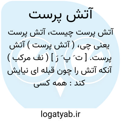 ( آتش پرست ) ( اسم ) ۱- پرستند. آتش آنکه آتش پرستد. ۲ - زردشتی زرتشتی.