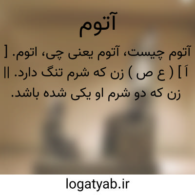 اتوم. [ اَ ] ( ع ص ) زن که شرم تنگ دارد. || زن که دو شرم او یکی شده باشد.