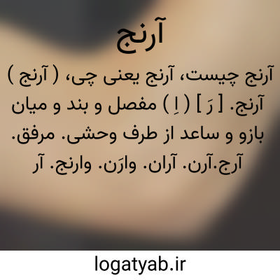 ( آرنج ) آرنج. [ رَ ] ( اِ ) مفصل و بند و میان بازو و ساعد از طرف وحشی. مرفق. آرج.آرن. آران. وارَن. وارنج. آرنگ. رونکک: