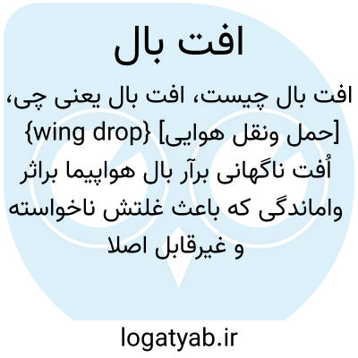 {wing drop} [حمل ونقل هوایی] اُفت ناگهانی برآر بال هواپیما براثر واماندگی که باعث غلتش ناخواسته و غیرقابل اصلاح آن می شود