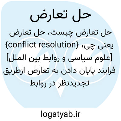 {conflict resolution} [علوم سیاسی و روابط بین الملل] فرایند پایان دادن به تعارض ازطریق تجدیدنظر در روابط طرف ها به گونه ای که اهداف آنها بدون تعارض محقق شود یا اهدافشان دیگر با هم تعارضی نداشته باشد