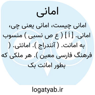 امانی. [ اَ ] ( ع ص نسبی ) منسوب به امانت. ( آنندراج ). امانتی. ( فرهنگ فارسی معین ). هر ملکی که بطور امانت بکسی واگذار شده باشد بدون اجازه. ( ناظم الاطباء ). املاک خالصه سرخس را اجازه نداده اند و امانی عمل میکنند. ( یادداشت مؤلف ). || گرو و رهن. ( ناظم الاطباء ).