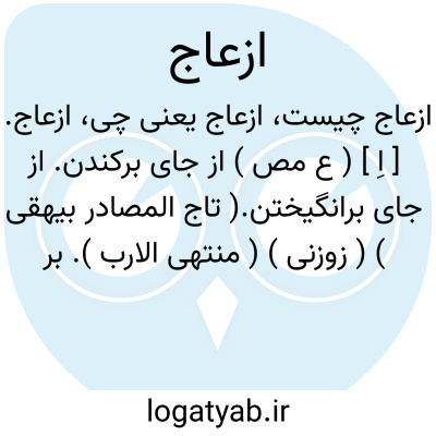 ازعاج. [ اِ ] ( ع مص ) از جای برکندن. از جای برانگیختن.( تاج المصادر بیهقی ) ( زوزنی ) ( منتهی الارب ). برخیزانیدن. ( غیاث اللغات ). جنبانیدن. ( غیاث ). قلع از مکان. || برآوردن. ( غیاث اللغات ). قطع کردن. || بیرون آوردن. بیرون کردن لشکر را. از پیش برداشتن: پیش از تفاقم شر و اشتعال نائره ٔایشان بکفایت مهم ایشان قیام نمایند و بر ازعاج و ارسال ایشان قناعت نکرد خویشتن از بلخ نهضت فرمود و برعقب ایشان بیامد. ( ترجمه تاریخ یمینی ص 174 ). شمس المعالی قابوس دو هزار مرد از گردان شاهجان بمدافعت او [ منتصر ] فرستاد تا او را از آن حدود ازعاج کردندو او بجانب بیار افتاد. ( ترجمه تاریخ یمینی ص 233 ). بعد از دو روز ملکه امرا و اعیان کبراء شهر را بخواند و گفت سلطانی بزرگ است که بظاهر شهر نزول کردست و اتابک را قوت ازعاج و اطراد او نه. ( جهانگشای جوینی ). ملک ماوراءالنهر بدو ارزانی داشت و او را ازعاج نکرد. ( جهانگشای جوینی ). خویشتن را بیمار زار ساخته از آنجا ازعاج او واجب شمردند. ( جهانگشای جوینی ). یرلیغها اصدار فرمودند مشتمل بر آنکه ما بر عزیمت قلع قلاع ملاحده و ازعاج آن طایفه از حکم یرلیغ قاآن میرسیم. ( رشیدی ). || گسیل کردن. فرستادن. || بی آرام ساختن. ( منتهی الارب ). بستوه آوردن.