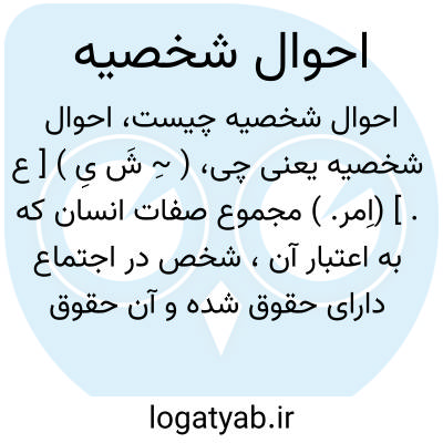 [ویکی فقه] اَحْوال ِ شَخْصیه، یا احوال شخصی، اصطلاح حقوقی به معنی مجموع اوصاف و خصوصیاتی که وضع و هویت شخص و حقوق و تکالیف او را در خانواده و اجتماع معین می کند.
