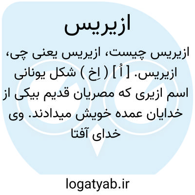 ازیریس. [ اُ ] ( اِخ ) شکل یونانی اسم ازیری که مصریان قدیم بیکی از خدایان عمده خویش میدادند. وی خدای آفتاب غروب کننده و حامی اموات، شوهر ایزیس و پدر هُروس بود. و رجوع بفرهنگ ایران باستان تألیف پورداود ص 137 و ایران باستان تألیف پیرنیا ص 84 و 943 شود.
