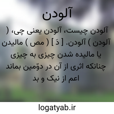 ( آلودن ) آلودن. [ دَ ] ( مص ) مالیدن یا مالیده شدن چیزی به چیزی چنانکه اثری از آن در دوّمین بماند اعم از نیک و بد و خشک و تر، چون آب و خاک و خون و اشک و مشک و زهر و قیر و خوی و پلیدی و جز آن. واین فعل لازم و متعدّی آید. تلویث. ملوث کردن. بطغ. بَدغ. تمریخ. تلطیخ. لطخ. تلطخ. تَمضخ. تضمیخ. تمشیغ. لوث. ( دهار ). چرکین کردن. آلوده کردن: