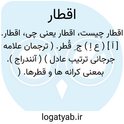 اقطار. [ اَ ] ( ع اِ ) ج ِ قُطر. ( ترجمان علامه جرجانی ترتیب عادل ) ( آنندراج ). بمعنی کرانه ها و قطرها. ( آنندراج ) ( غیاث اللغات ):