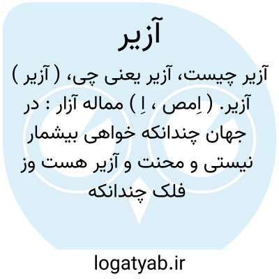 ( آزیر ) آزار، رنج، آسیب: در جهان چندان که خواهی بی شمار / نیستی و محنت و آزیر هست (انوری: ۵۶۱ حاشیه ).