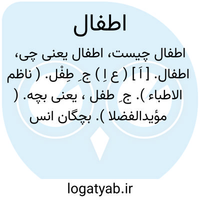 اطفال. [ اَ ] ( ع اِ ) ج ِ طِفْل. ( ناظم الاطباء ). ج ِ طفل، یعنی بچه. ( مؤیدالفضلا ). بچگان انسان: تا اطفال ایران علوم معاشیه نیاموزند ایران آباد نمی شود. ( فرهنگ نظام ). نوزادگان. ( از منتهی الارب ). کودکان. خردسالان. نوزادان. نوباوگان. کودکهای خرد و بچه ها بخصوص بچه های انسان. ( ناظم الاطباء ):
