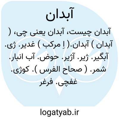 ( آبدان ) آبدان.( اِ مرکب ) غدیر. ژی. آبگیر. ژیر. آژیر. حوض. آب انبار. شمر. ( صحاح الفرس ). کوژی. غفچی. فرغر: