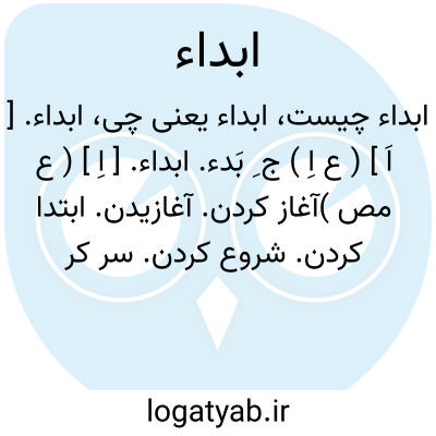 ابداء. [ اِ ] ( ع مص )آغاز کردن. آغازیدن. ابتدا کردن. شروع کردن. سر کردن. سر گرفتن. ابتداء. کار نو و نخستین آوردن. نو آفریدن. || آشکار کردن. پیدا کردن چیزی را.