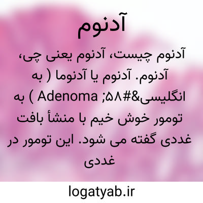 آدنوم. آدنوم یا آدنوما ( به انگلیسی: Adenoma ) به تومور خوش خیم با منشأ بافت غددی گفته می شود. این تومور در غددی مانند هیپوفیز، کولون، کبد، تیروئید، پاراتیروئید، غده فوق کلیوی و… تشکیل می شود. علائم آن اغلب ناشی از فشار بر بافتهای مجاور و ترشح هورمونهای مربوط به بافت منشأ می باشد. مثلاً آدنوم هیپوفیز با فشار بر بافتهای مجاور موجب تاری دید و سردرد شده و با ترشح هورمون رشد منجر به درشت پایانکی ( آکرومگالی ) می شود.