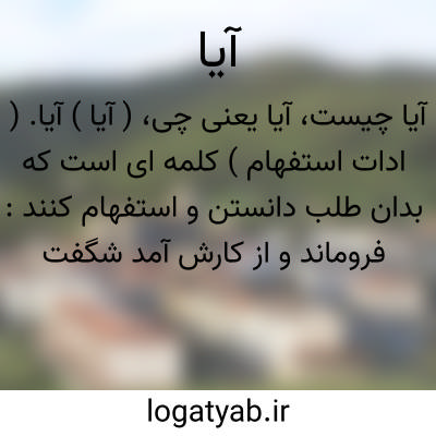 ( آیا ) ( ادات استفهام ) کلمه ایست که بدان طلب دانستن و استفهام کنند. یا آیا بود ترجی و تمنی را رساند بود آیا.