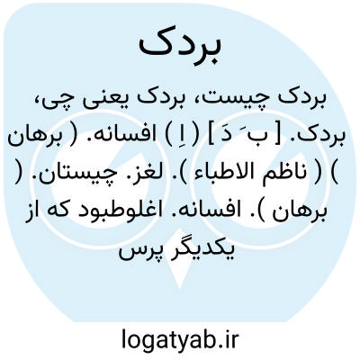 بردک. [ ب َ دَ ] ( اِ ) افسانه. ( برهان ) ( ناظم الاطباء ). لغز. چیستان. ( برهان ). افسانه. اغلوطبود که از یکدیگر پرسند. احجیه. ( مهذب الاسماء ). و بعربی لغز گویند. حجیا. ( یادداشت مؤلف ):
