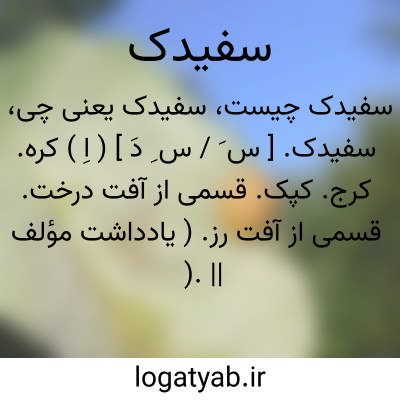 سفیدک. [ س َ / س ِ دَ ] ( اِ ) کره. کرج. کپک. قسمی از آفت درخت. قسمی از آفت رز. ( یادداشت مؤلف ). || سپیدی زائد که بر جامه نیک ناشسته و نان مانده و امثال آن پیدا آید و با زدن صرف شود. ( یادداشت مؤلف ).
