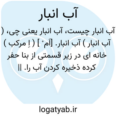 ( آب انبار ) (اَ )(اِمر. ) ۱ - جایی سرپوشیده برای ذخیره کردن آب در زیرزمین. ۲ - آبدان، آبگیر.