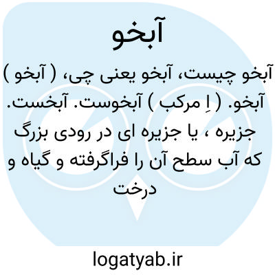 ( آبخو ) آبخو. ( اِ مرکب ) آبخوست. آبخست. جزیره، یا جزیره ای در رودی بزرگ که آب سطح آن را فراگرفته و گیاه و درختان آن ظاهر باشد: