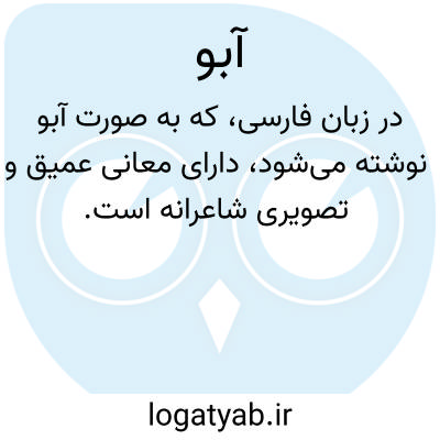 در زبان فارسی، که به صورت آبو نوشته می‌شود، دارای معانی عمیق و تصویری شاعرانه است. در نگاه نخست، این کلمه به معنای آبی اشاره دارد و رنگ آسمان و دریا را در ذهن تداعی می‌کند؛ رنگی که نماد آرامش، وسعت و عمق است. همچنین، این واژه به‌صورت استعاری برای توصیف هر چیزی که به رنگ آبی یا دارای جلوه‌ای از آب باشد، به‌کار می‌رود و در ادبیات کهن و نوین فارسی، حضوری قابل تأمل دارد.