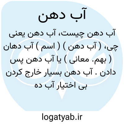 ( آب دهن ) ( اسم ) آب دهان ( بهم. معانی ) یا آب دهن پس دادن. آب دهن بسیار خارج کردن بی اختیار آب دهن بیرون ریختن.