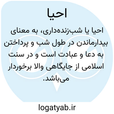 [ویکی شیعه] اِحیا یا شب زنده داری (یعنی شب را به دعا و عبادت گذراندن) یکی از سنت های مهم در میان مسلمانان است.