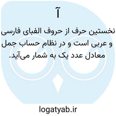 ( آ ) (حر. ) «آ» یا «الف ممدوده » نخستین حرف از الفبای فارسی، اولین حرف از حروف ابجد، برابر با عدد «۱».