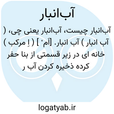 ( آب انبار ) (اَ )(اِمر. ) ۱ - جایی سرپوشیده برای ذخیره کردن آب در زیرزمین. ۲ - آبدان، آبگیر.