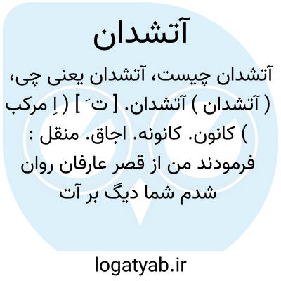 ( آتشدان ) ( اسم ) ۱ - ظرفی که در آن آتش نهند منقل اجاق. ۲ - تنور تنوره. ۳ - ظرفی مخصوص در آتشکده که در آن آتشی مقدس افروزند.