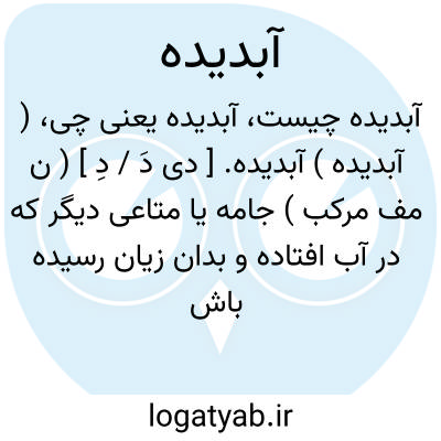 ( آبدیده ) ( صفت ) ۱- جامه یا متاعی دیگر که در آب افتاده و زیان ندیده باشد. ۲ - خیس مرطوب تر.