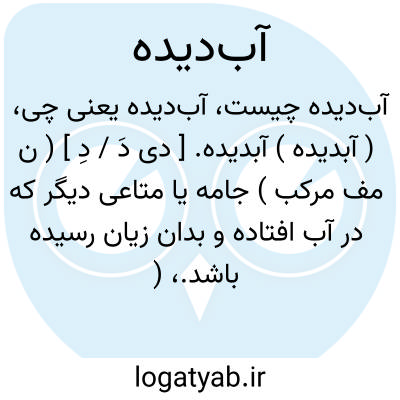 ( آبدیده ) ( صفت ) ۱- جامه یا متاعی دیگر که در آب افتاده و زیان ندیده باشد. ۲ - خیس مرطوب تر.