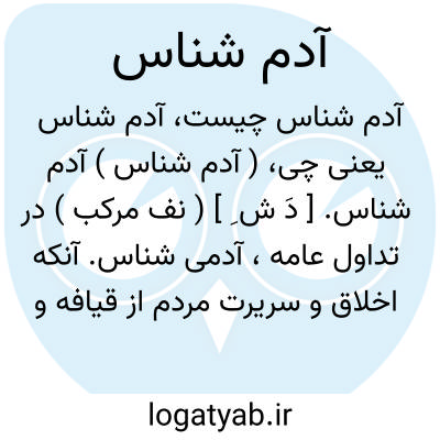 ( آدم شناس ) ( اسم ) آدمی شناس آنکه اخلاق مردم را از قیافه و طرز رفتار و گفتار آنان درک کند.
