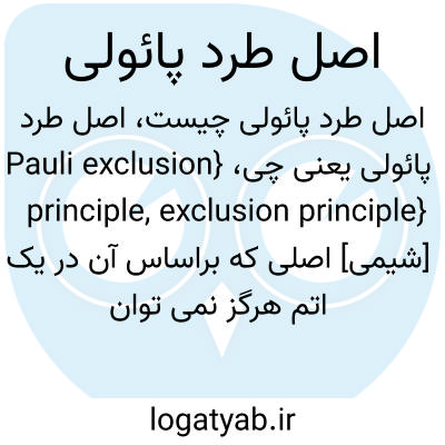 {Pauli exclusion principle, exclusion principle} [شیمی] اصلی که براساس آن در یک اتم هرگز نمی توان دو الکترون داشت که هر چهار عدد کوانتومی آنها یکسان باشد