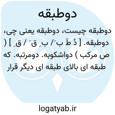 دوطبقه. [ دُ طَ ب َ/ ب ِ ق َ / ق ِ ] ( ص مرکب ) دواشکوبه. دومرتبه. که طبقه ای بالای طبقه ای دیگر قرار داشته باشد: اتاق دوطبقه.ساختمان دوطبقه. ( یادداشت مؤلف ). اتوبوس دوطبقه.