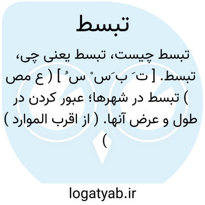(تَ بَ سُّ ) [ ع. ] (مص ل. ) ۱ - پهناور شدن. ۲ - گستردگی. ۳ - گردش، تفرج. ۴ - گستاخی، بی پروایی.